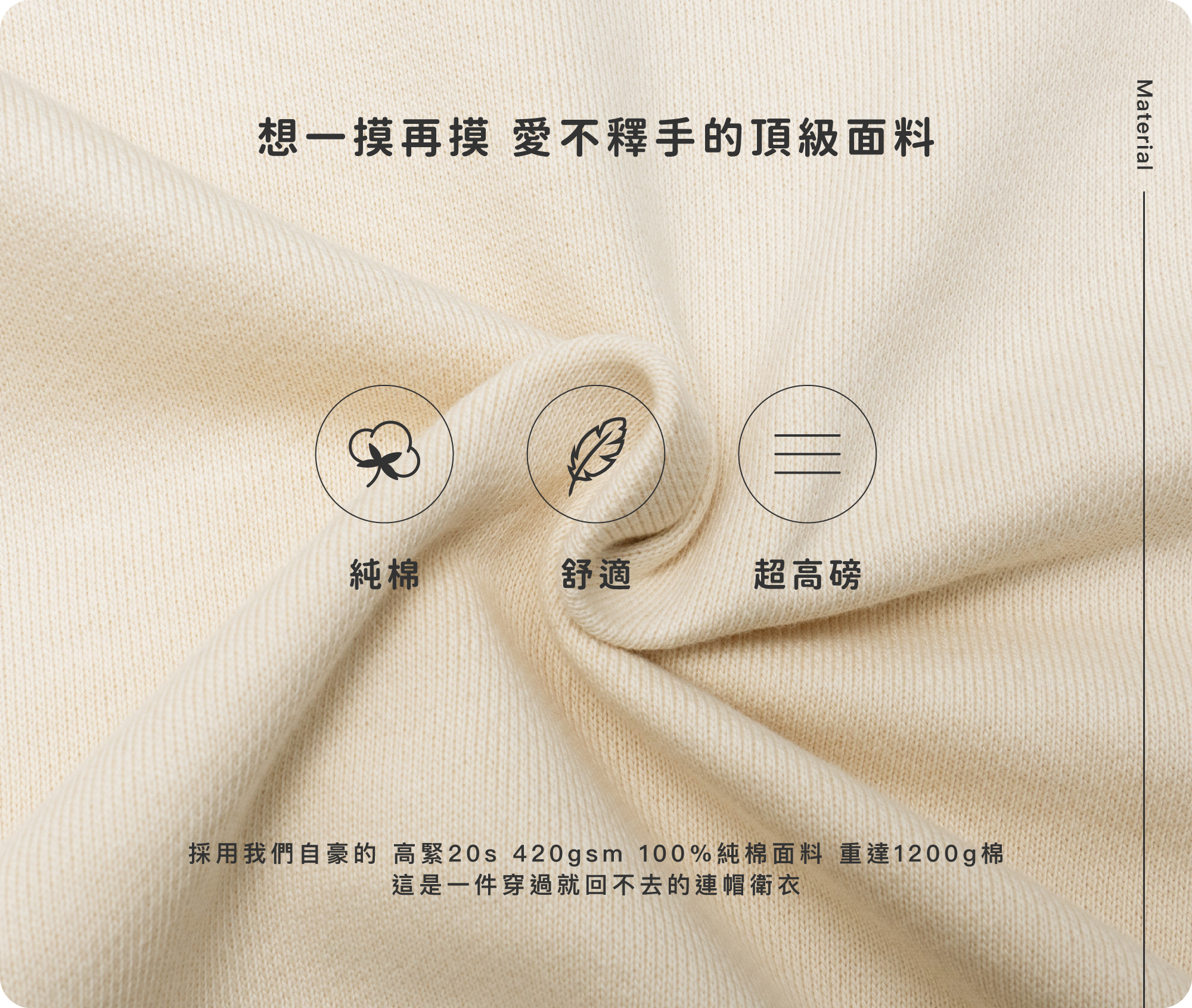 - 420gsm 100%純棉超厚磅材質,舒適、挺度我們都要。