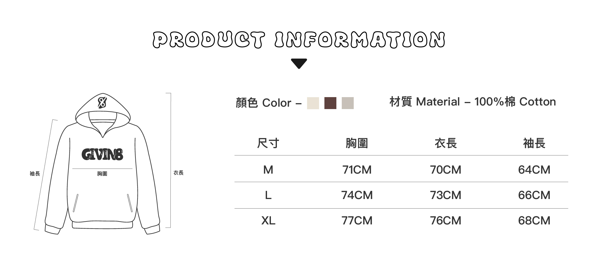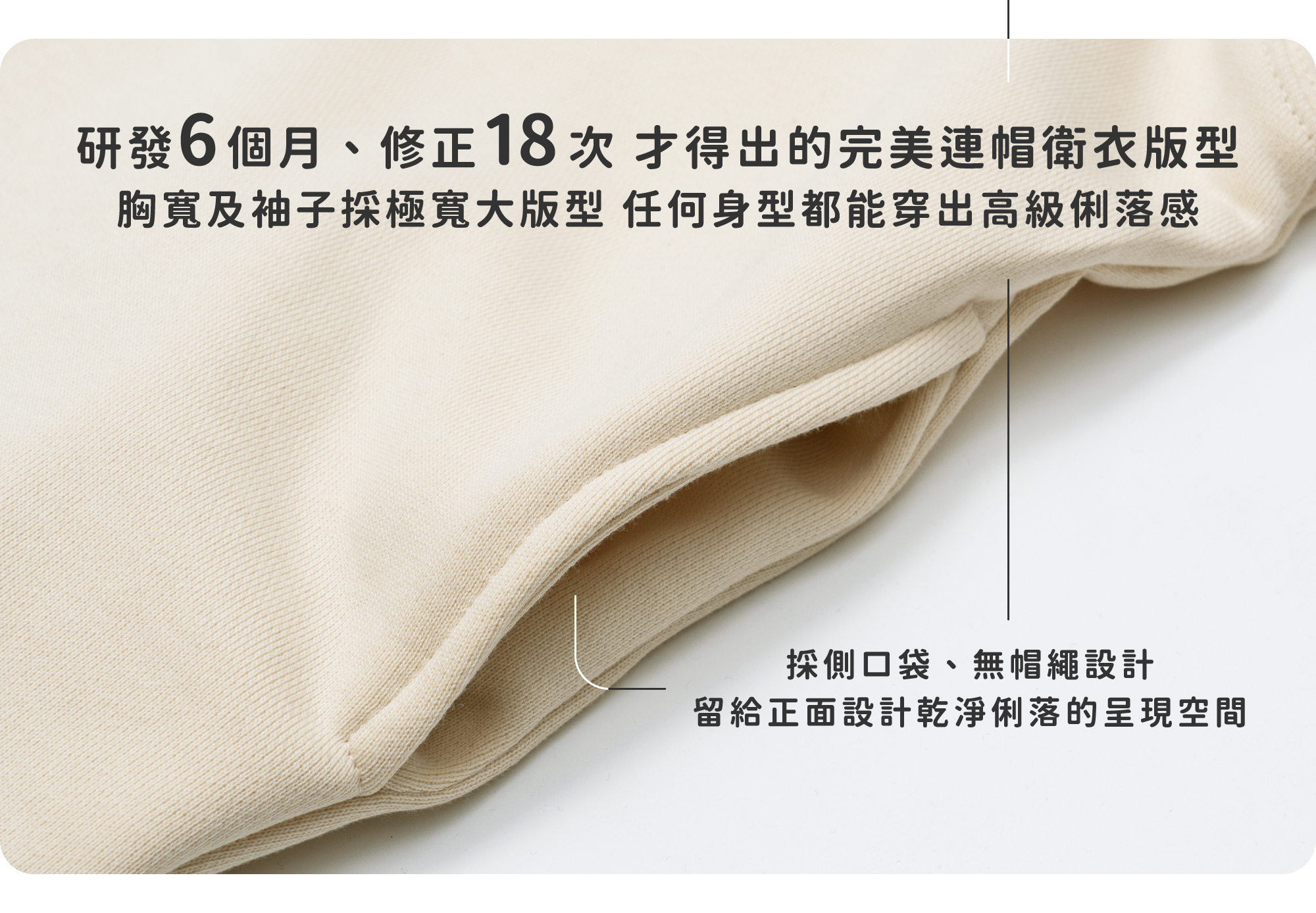 - 無抽繩帽子、側口袋設計,正面乾淨俐落,完美呈現視覺美學。
